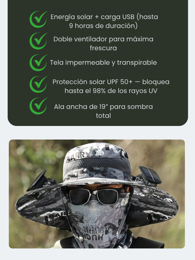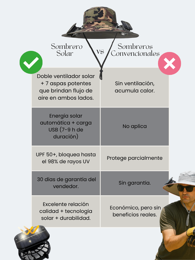 Funciona con ambos. Los ventiladores se activan automáticamente con la energía solar, y cuando no hay sol puedes usar la batería recargable por USB, con una duración de hasta 9 horas.